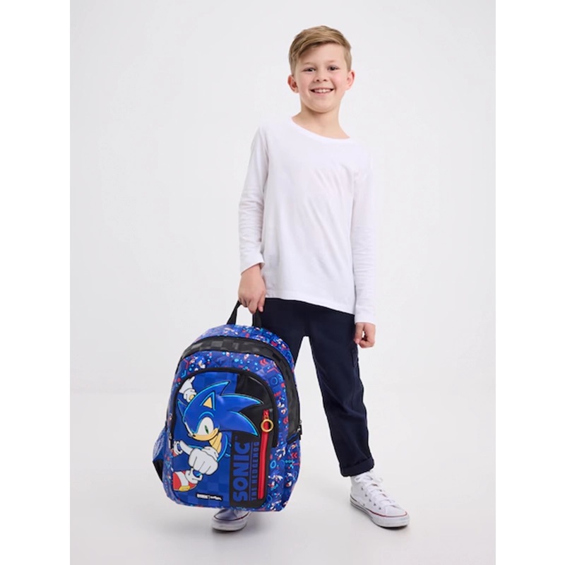 معرفی : کوله پشتی مدرسه ای اسمیگل smiggle طرح سونیک یک انتخاب جذاب برای طرفدارای این شخصیت محبوب بازی و کارتون هست که با ترکیب رنگ آبی خاص و جزئیات گرافیکی هیجانانگیزش که حسابی جلب توجه میکند. جنس بدنه از PU (چرم مصنوعی) نرم و باکیفیت ساخته شده که هم ظاهر براق و مرتب دارد هم راحت تمیز میشود، و قسمت جلویی با آپلیکه سهبعدی سونیک و زیپ فلزی طرح حلقهی طلایی تزئین شده. سه محفظهی زیپدار جادار، جای مخصوص لپتاپ 15 اینچی، دو جیب کناری برای قمقمه، بندهای شونهای نرم و قابل تنظیم از ویژگیهای کاربردی این کوله هستند. شما میتونید این محصول رو با کیف پول اسمیگل طرح سونیک و کیف غذای اسمیگل طرح سونیک سونیک ست کنید.
