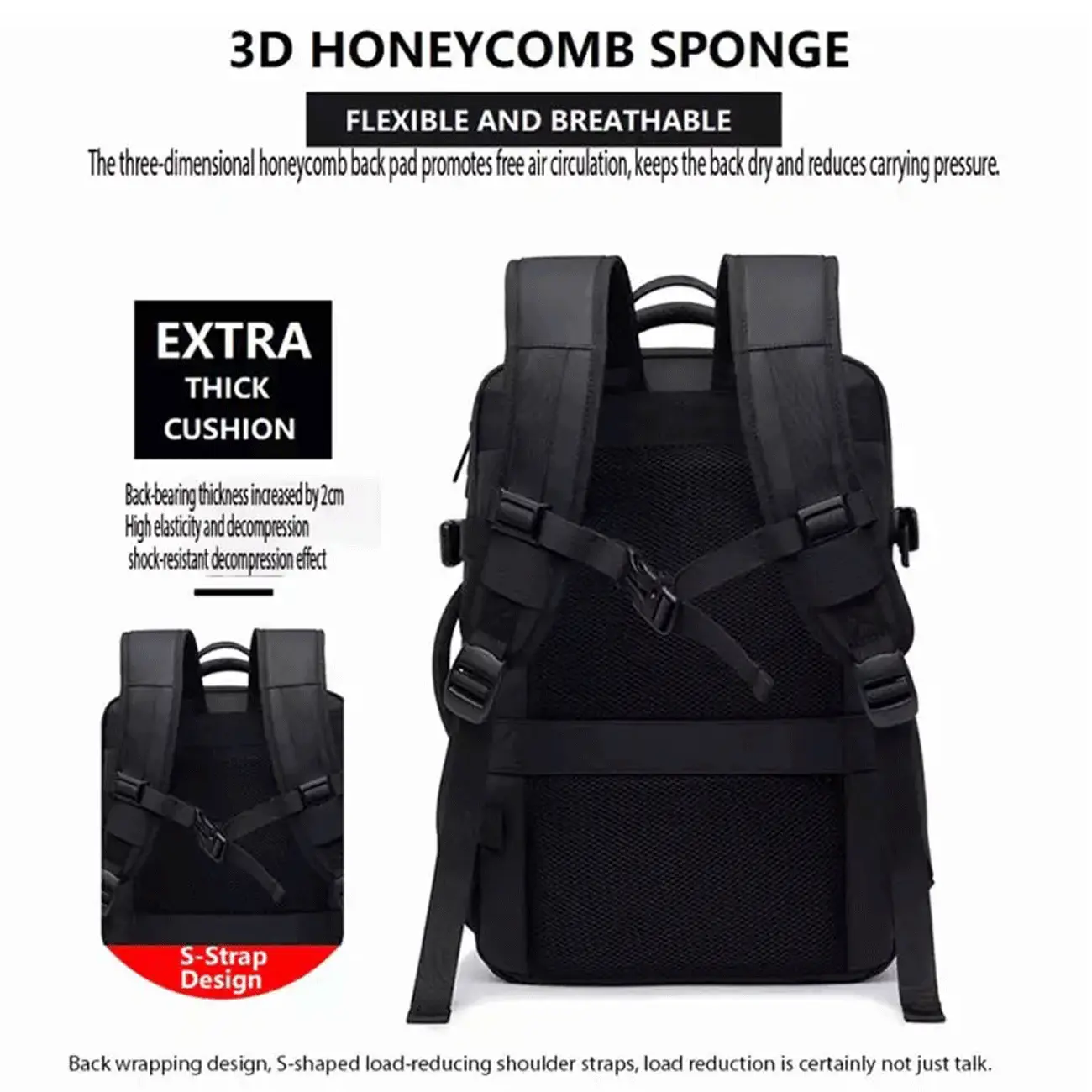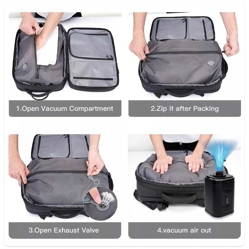 شما به راحتی می توانید حجم کوله پشتی را تغییر دهید؛ برای این کار فقط کافی ست زیپ میانی را باز کنید تا حجم کوله پشتی 12 سانتی متر ( از 22 لیتر به 37 لیتر) بیشتر شود. این جیب مناسب قرار دادن لباس و وسایل ضروری مسافرت است، این کوله بزرگ مسافرتی دارای یک دریچه برای وکیوم کردن دارد و این ویژگی امکان افزایش فضا برای قرار دادن لوازم بیشتر را در اختیارتان قرار میدهد؛ برای این کار میتوانید از جانبی پمپ هوای مخصوص کوله پشتی BG-3028 را خریداری کنید، در ضمن این دریچه به شما اجازه میدهد هوای داخل را با دست هم بتوانید خالی کنید.