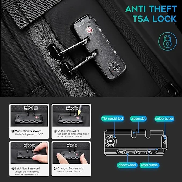 کیف کولی Bange با قرار دادن یک قفل ضد سرقت TSA از هرگونه سرقت وسیله هایتان جلوگیری کرده است؛ این قفل در قسمت کناری زیپ اصلی قرار داده شده است تا امنیت کیف را چند برابر کند.