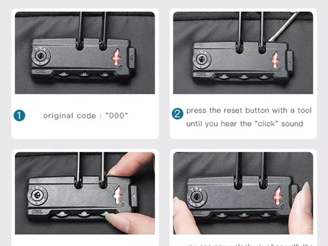 4) اکنون می توانید قفل کیف خود را با کد 4 رقمی جدید باز کنید.و مطمین شوید که کد جدید خود را به خاطر دارید.