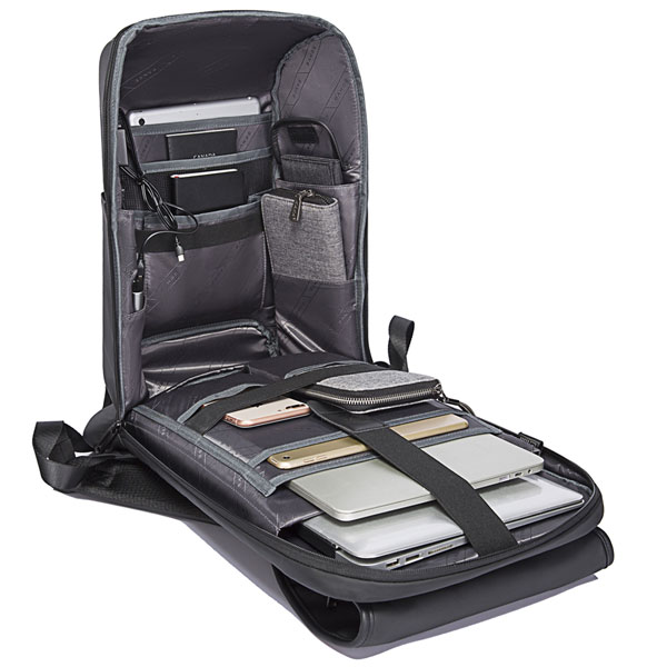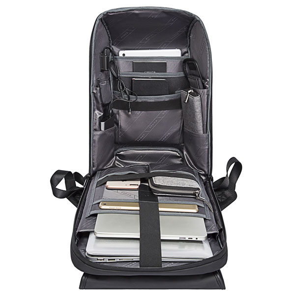کوله ضد سرقت یو اس بی دار بنج مدل BG-7276 دارای ذخیره سازی چند محفظه است تا شما وسایل خود را به طور منظم در آن قرار دهید. این کوله پشتی ضد آب دارای یک محفظه بزرگ برای قرار دادن لپ تاپ 15.6 اینچ و یک محفظه جداگانه برای قرار دادن آیپد 12.9 اینچی است.