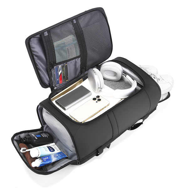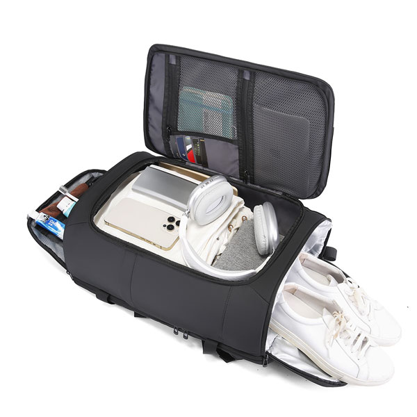 یکی از جذابترین ویژگیهای کولهپشتی بنج، محفظه کفش مستقل است. این محفظه ضد آب و ضد رسوب طراحی شده و کمک میکند تا کفشهای شما بهطور جداگانه نگهداری شوند و سایر وسایل داخل کولهپشتی تمیز و مرتب باقی بمانند. علاوه بر این، وجود یک محفظه مرطوب مجزا برای نگهداری وسایلی مانند مسواک، حولههای خیس یا حتی لباسهای مرطوب، باعث میشود در طول سفر یا استفاده روزمره، وسایلتان به بهترین شکل سازماندهی شوند و هیچ نگرانی بابت بو یا آلودگی نداشته باشید.