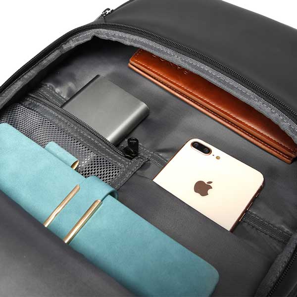 کوله پشتی یو اس بی دار بنج 7690 دارای ذخیره سازی چند محفظه است تا شما وسایل خود را به طور منظم در آن قرار دهید. این کوله پشتی ضد آب دارای دو محفظه جداگانه برای قرار دادن لپ تاپ و تبلت تا 15.6 اینچ وجود دارد که هر دو با یک بند Velcro الاستیک بسته شده اند و کاملا ایمن هستند.