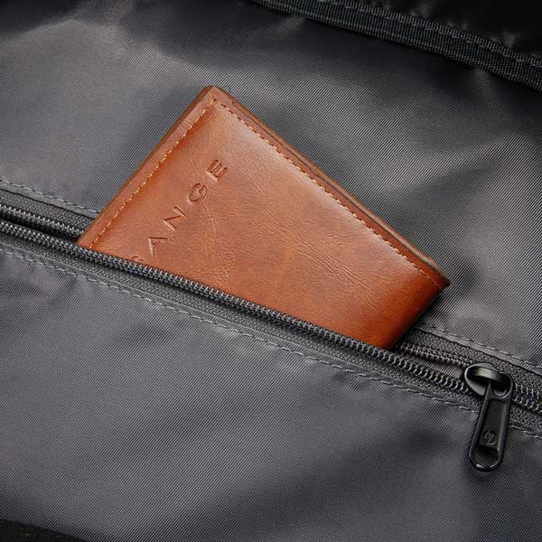 پشت کوله پشتی و بندهای شانهای پهن با اسفنجهای قابل تنفس پوشانده شده تا کوله پشتی برای استفاده نرم و راحت باشد و از تعریق جلوگیری نماید. در قسمت پشتی نیز یک کمربند نایلونی تعبیه شده است که به لطف آن میتوانید کوله پشتی را روی دسته کیف پرواز قرار دهید. همچنین یک جیب مخفی امن در این قسمت تعبیه شده که میتوانید برای مثال گوشی یا کیف پول خود را در آن قرار دهید.