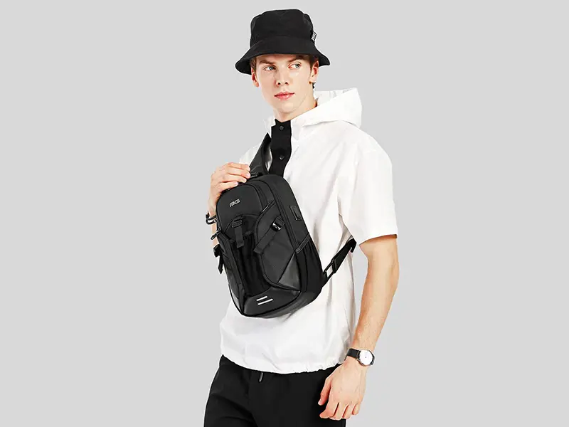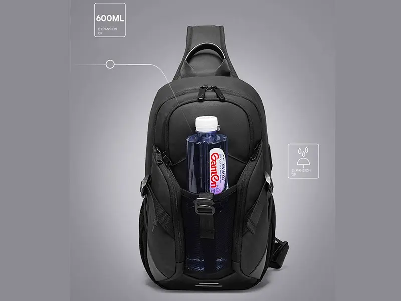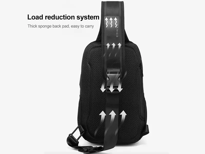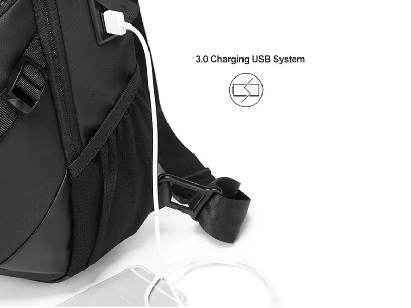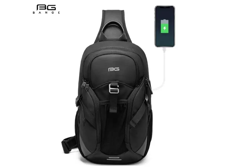 در طراحی کوله قفسه سینه BG-77120 پورت USB 3.0 میبینید که برای شارژ کردن موبایل یا هر دستگاه دیگری قابل استفاده است که در قسمت خارجی کیف در سمت چپ قرار دارد. تلفن خود را در دو مرحله آسان شارژ کنید: