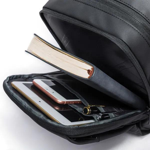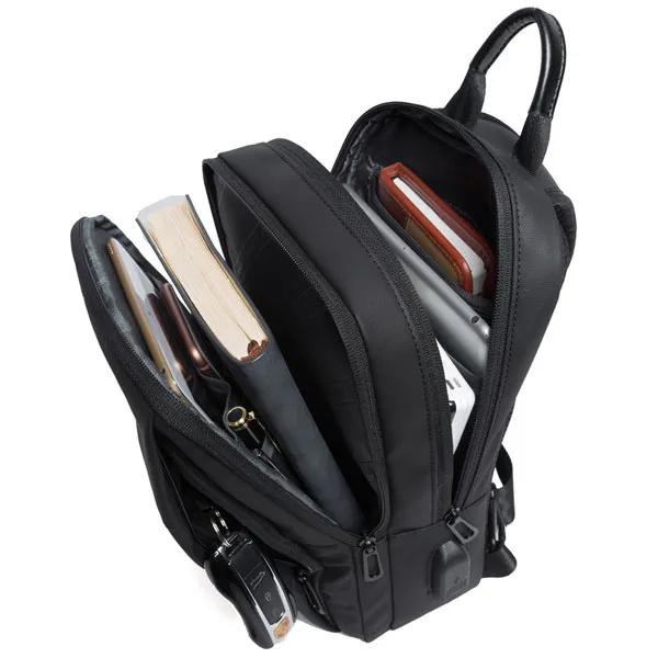 کوله تک بند ضد آب یو اس بی دار بنج با دو محفظه اصلی با جیب های مجزا برای تبلت 9.7 اینچ، کتاب، کیف پول، چتر، هدفون، پاور بانک و غیره مناسب می باشد.