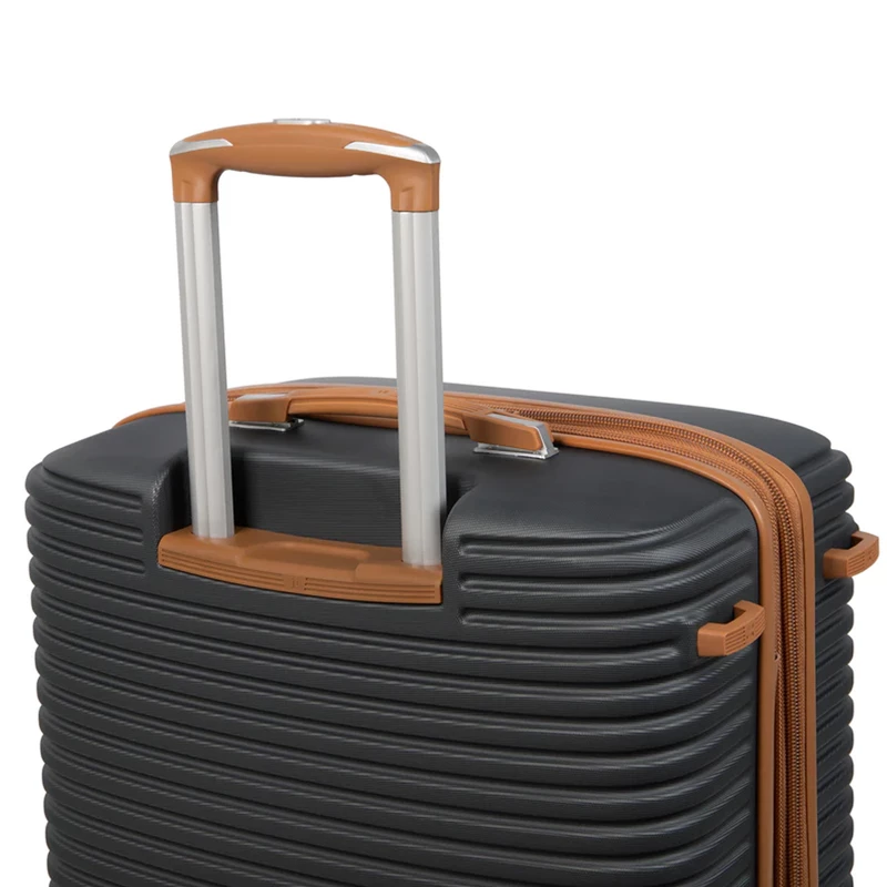 دسته تلسکوپی چمدان از جنس استیل سبک و ضدزنگ ساخته شده که در برابر ضربه و فشار مقاوم است. امکان تنظیم ارتفاع در چندین سطح و طراحی ارگونومیک آن، حمل چمدان را راحتتر کرده و از ایجاد فشار اضافی به دست جلوگیری میکند.