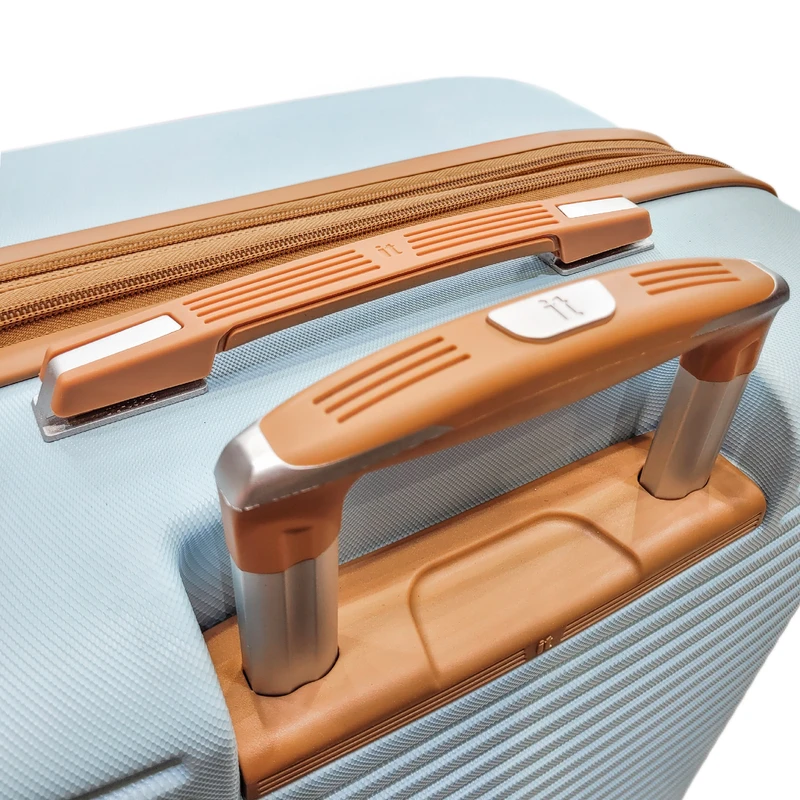 دسته تلسکوپی چمدان از جنس استیل سبک و ضدزنگ ساخته شده که در برابر ضربه و فشار مقاوم است. امکان تنظیم ارتفاع در چندین سطح و طراحی ارگونومیک آن، حمل چمدان را راحتتر کرده و از ایجاد فشار اضافی به دست جلوگیری میکند.