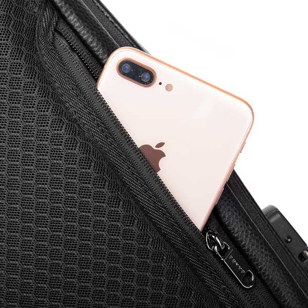 این کیف هوشمند طوری طراحی شده است که هر چیزی را که نیاز دارید در خود جای دهید و با خیال راحت به هر کجا که می خواهید بروید و به انجام کارهایتان مشغول شوید. قفل ضد سرقت با داشتن رمز عبور تضمین موثر ایمنی برای اموال شما در سفر نیز میباشد.