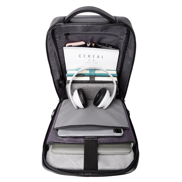 محفظه اصلی میتواند لپ تاپ 15.6 اینچی، آی پد 13 اینچی، کتاب، کیف پول،پاوربانک، تلفن همراه، لباس، هدفون، دوربین عکاسی و غیره را در خود جای دهد. با تعبیه دو جای خودکار جداگانه، جیب زیپدار داخلی و جیبهای جداگانه تمامی وسایل شما سازماندهی شده و دسترسی به آنها آسان است.