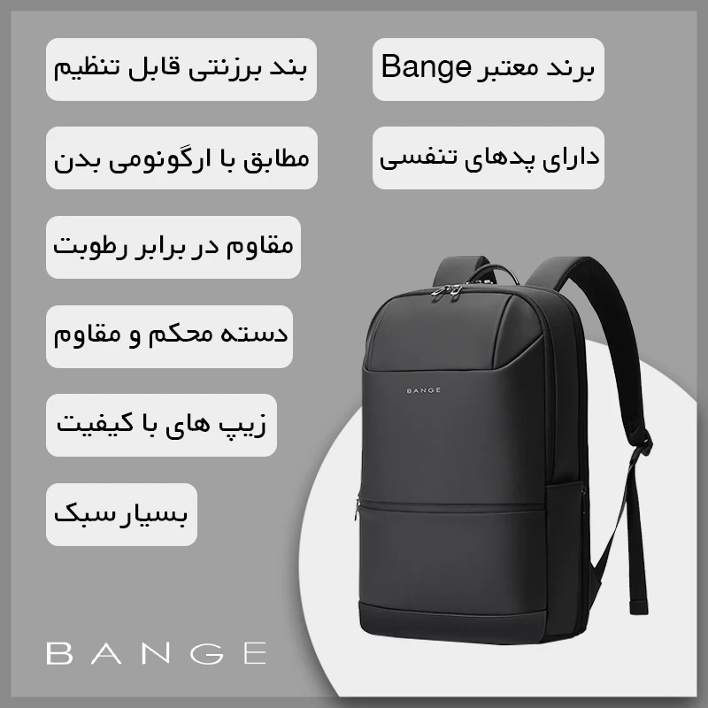 بنج برای حمل راحتتر و فشار نیامدن به شانهها در تولید تولید کوله لپ تاپ BG-2950 دو بند پهن و مقاوم برای آن درنظر گرفته است که با وجود سگکی با دوام، قابل تنظیم بوده و به راحتی و مطابق با نیاز و هدف شما سفارشی میشود.