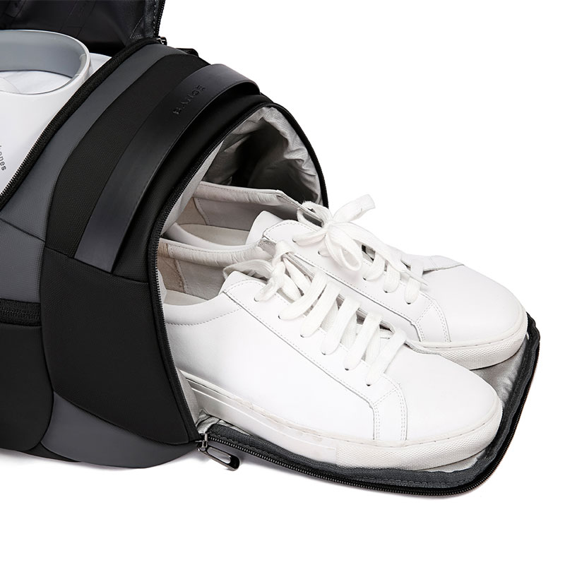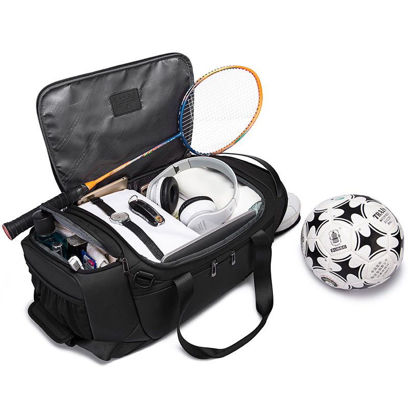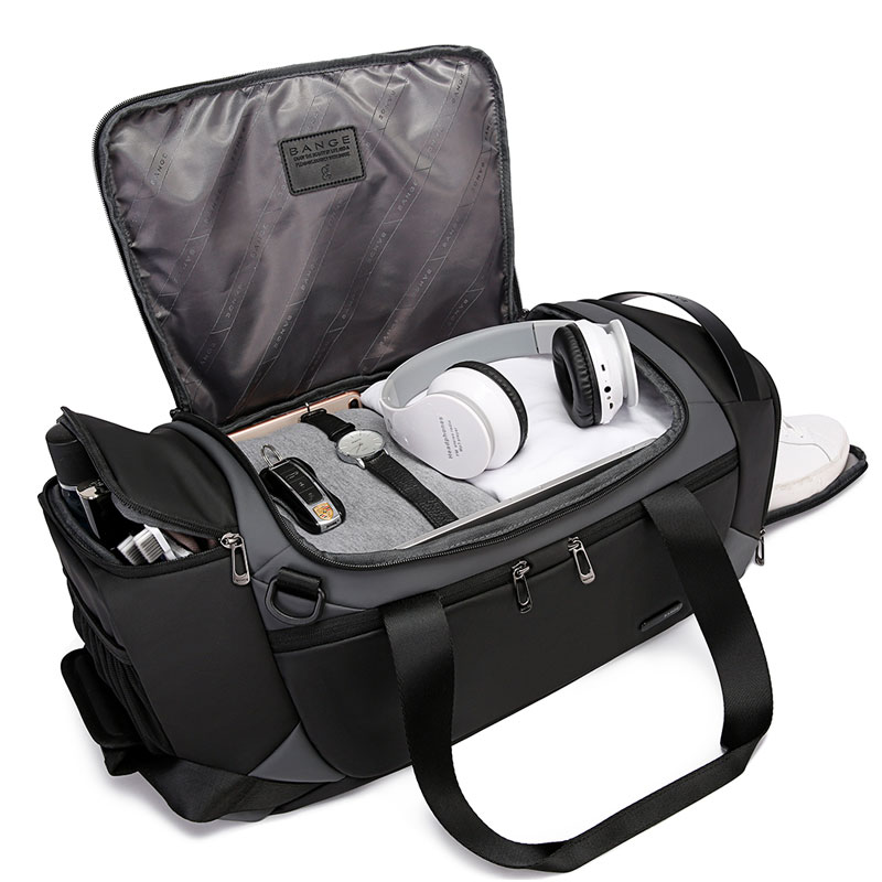 با توجه به تصویر زیر می توانید به راحتی متوجه شوید که کیف ورزشی بنج مکس با قابلیت جدا سازی وسایل مدل 2378 دارای ظرفیت فشرده بزرگ می باشد. شما می توانید کفش با سایز بسیار بزرگ را درون آن قرار دهید. همچنین ظرفیت این کیف ضد آب برای سفر 5-7 روزه مناسب می باشد. هر آنچه که نیز دارید اعم از کفش، لباس، گوشی، لپ تاپ، هدفون و لوازم شخصی را می توانید به راحتی در کیف ورزشی 2378 جای دهید.
