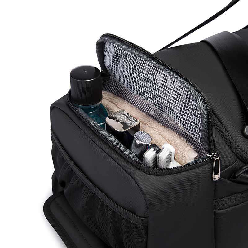 کیف ورزشی ضد آب بنج مکس مدل 2378 با یک سیستم سازماندهی باورنکردنی که به شما امکان میدهد در فضای کمتری بستههای بیشتری ببندید و هر کجا که میروید شیک به نظر برسید، این یک همراه عالی برای سفرهای شماست. در قسمت جلوی کیف یک جیب قراربا زیپ دو طرفه قرار دارد که برای قرار دادن وسایل ضروری و مورد نیاز مانند هندزفری و شارژر مناسب می باشد. شما با محفظه جداسازی خشک و مرطوب می توانید وسایل خیس و کثیف خود را از وسایل تمیز دور نگه دارید.