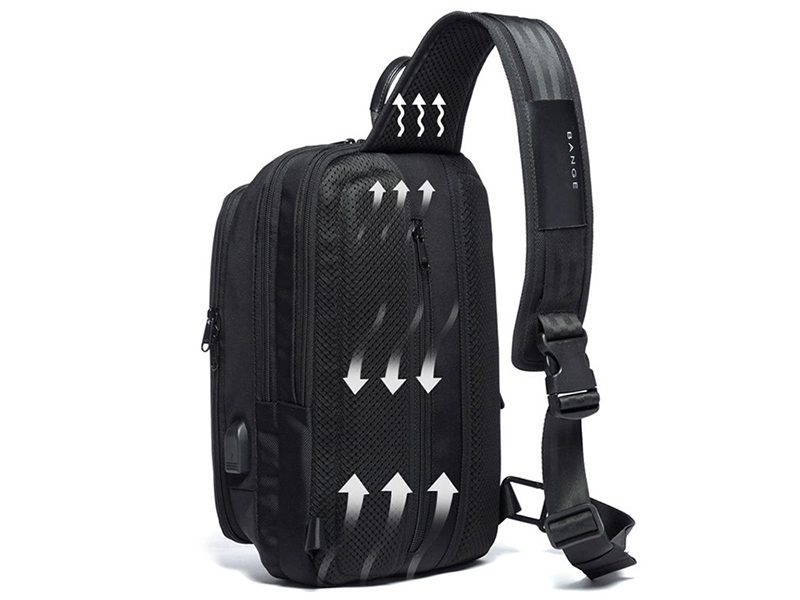 BANGE در طراحی کوله پشتی تک بند ضد آب BG-7079 یک لایه اسفنجی قابل تنفس با طرح لانه زنبوری در پشت تعبیه کرده که صاف و راحت است و با سیستم تهویه مانع از تعریق شده و از گرفتگی عضلات کمر و شانه جلوگیری می کند.