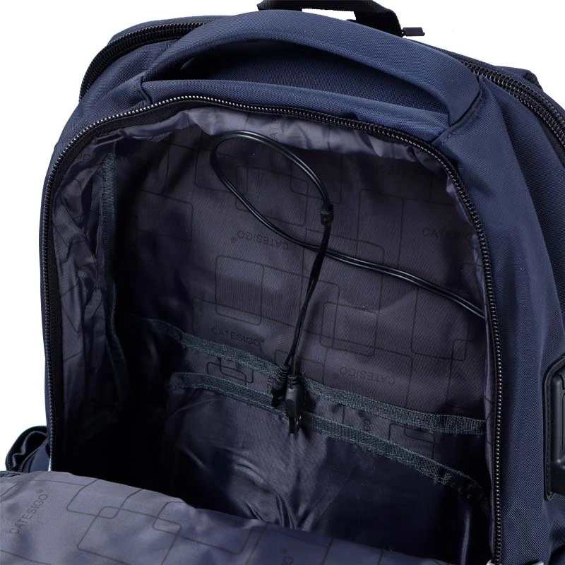 کوله پشتی لپ تاپ Catesigo مدل CS98873، دارای جنس برزنت، سبک و محکم است، همچنین دارای یک محفظه جهت حمل وسایل روزمره می باشد، این کوله پشتی دارای یک محفظه مخصوص لپ تاپ با محافظ حباب دار می باشد که لپ تاپ تا سایز 17 اینچ را در خود جای می دهد، دارای دو جیب زیپی در جلوی کیف می باشد، همچنین دو جیب زیپی در دو طرف کوله می باشد که برای قرار دادن وسایل دم دستی یا ظرف آب مناسب می باشد، دارای سرزیپ های کروم است، لازم به ذکر است که یراق ها تماما استیل ضد زنگ و بسیار مقاوم می باشند، همچنین دارای آستر بسیار با کیفیت در تمامی قسمت های داخلی نیز می باشد، دارای پد تهویه هوا در سراسر قسمت پشتی بندهای کوله به جهت جلوگیری از عرق کردن پشت حمل کننده است، این کوله دارای خروجی usb و هندزفری می باشد، این کوله دارای یک دسته از جنس بدنه، جهت حمل کیف به صورت دستی است، همچنین دارای دو بند کولی، جهت حمل به صورت کوله پشتی نیز می باشد.